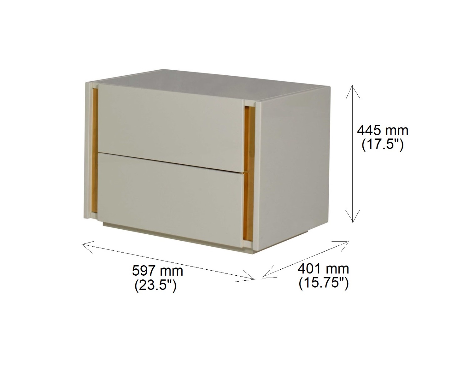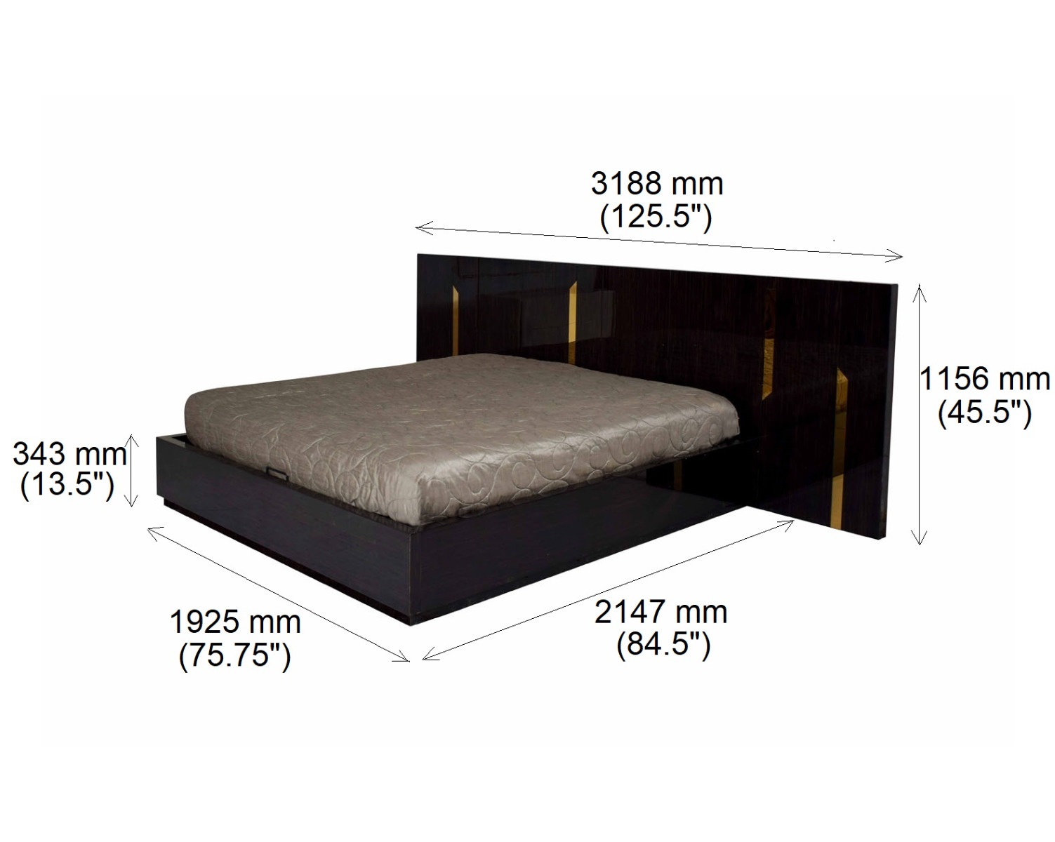 This elegant king bed comes with dark walnut veneer headboard with hydraulic lift storage. This is complemented by gold-finished stainless-steel inlay trim on the headboard which gives a chic modern feel. Bedside table lacquered in high gloss with a spacious drawer with gold-finished stainless steel trim & wood base. Dresser lacquered in high gloss with spacious three drawers & wood base. Beautiful round art décor mirror with ebony veneer & gold flutes in contemporary design.