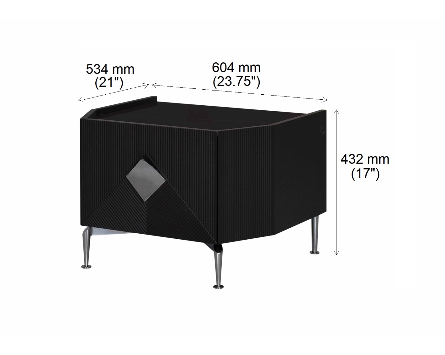 The gorgeous bedside table is in a black glossy finish with a spacious drawer with stainless steel handle & base.