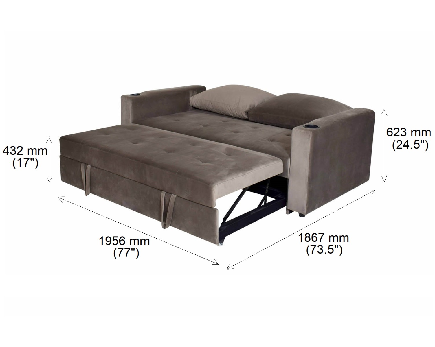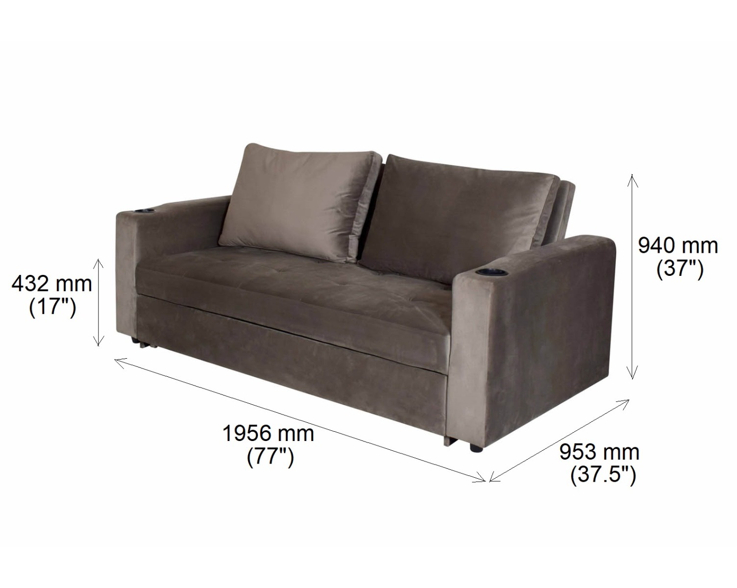 Our stylish sofa cum bed that enhances the aesthetic appeal of your living space. Featuring wide arm rests with two glass holders and deep cushioned seat that offers maximum utility space. It comes upholstered in fabric with wooden legs. It features a foldable back that transforms the sofa into a flat bed. Welcome that unexpected guest with a smile now.