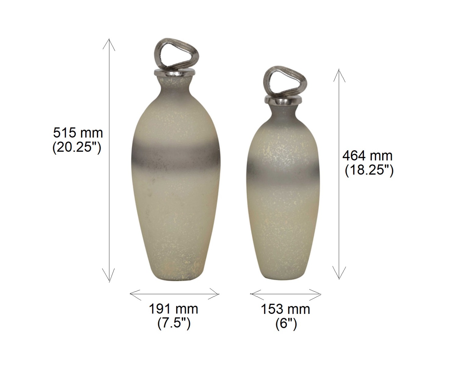 Decorative bottle in grey & white tinted luster glass with ornamental nickel plated aluminum lid.