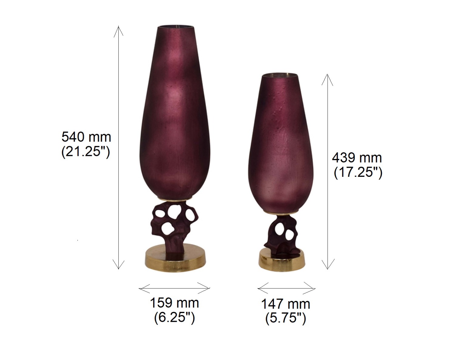Vase in champagne & faded poppy glass and antique gold aluminum decorative base.