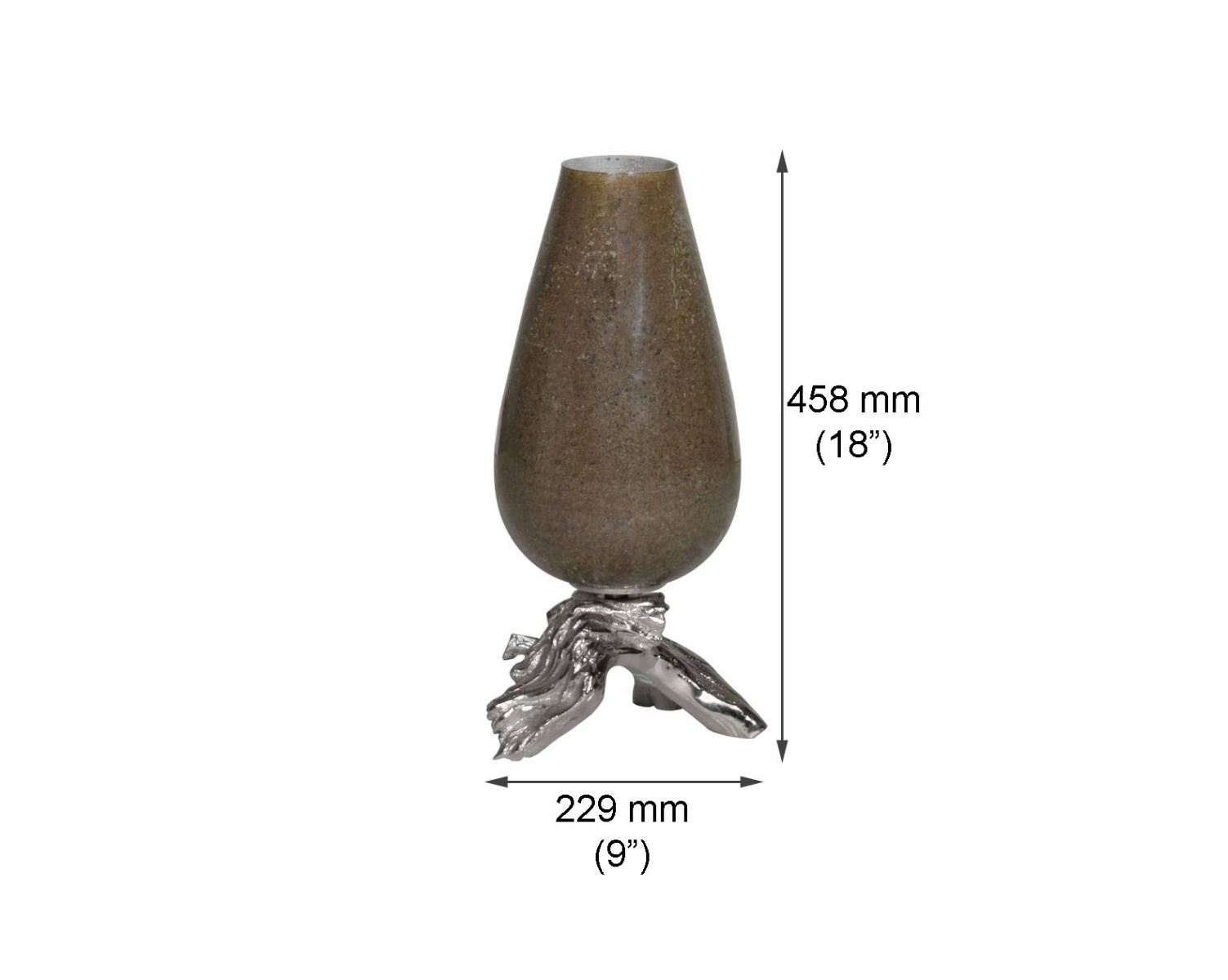 Vase in sand lustre glass and antique gold with nickel-plated aluminium decorative base.
