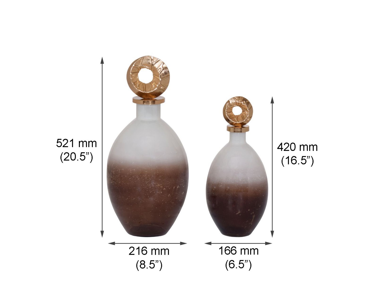 Decorative bottle in champagne & teak crust tinted lustre glass with ornamental antique gold plated aluminium lid.- large