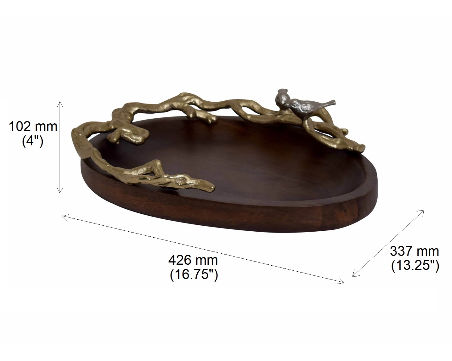 Platter in dark walnut with a decorative finish wood with gold-finished nickel-plated aluminum handle.