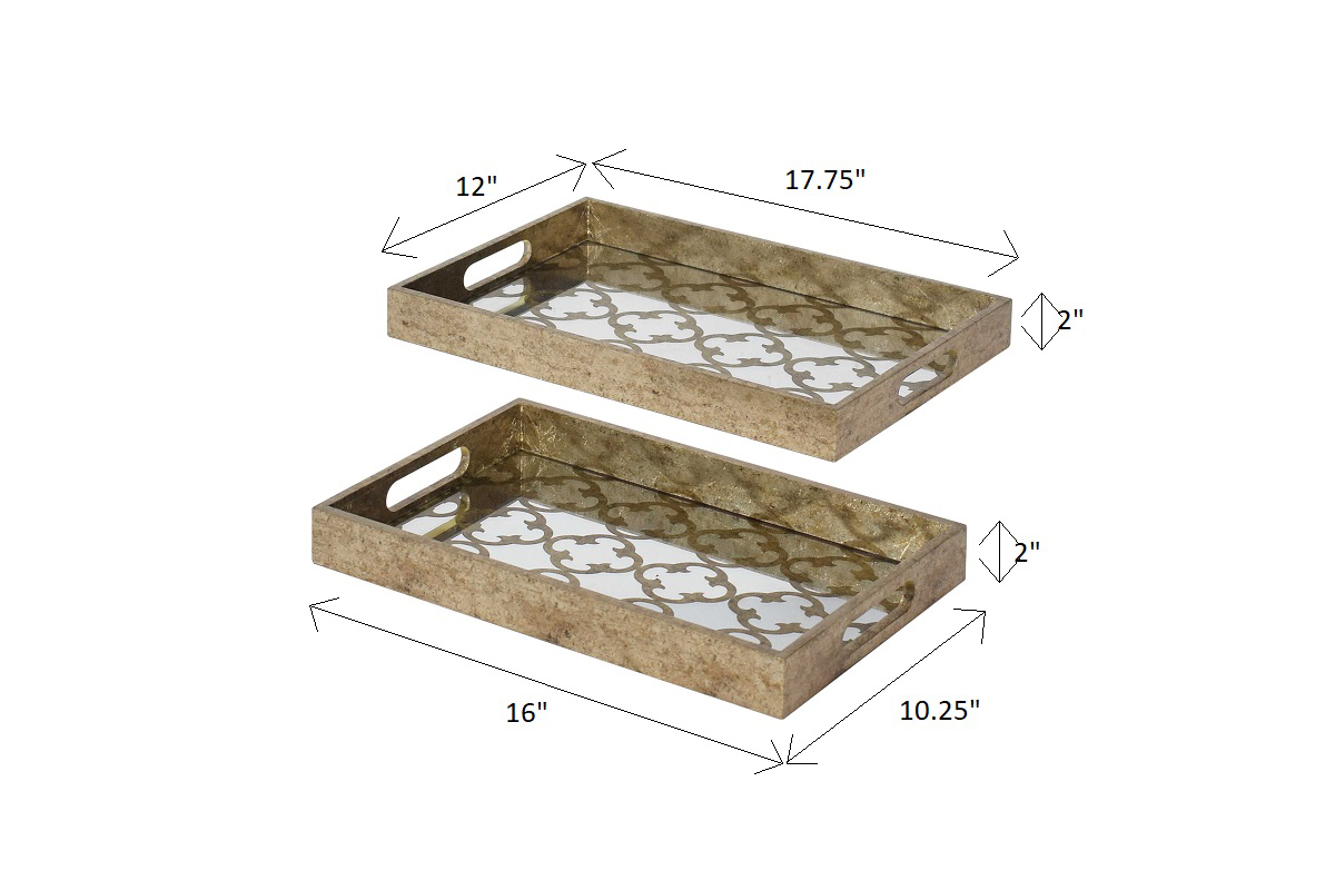 Rectangular tray in antique champagne with mirror base.