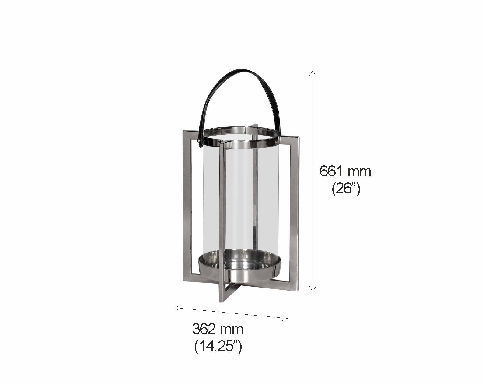 A master of reimagining classic forms, solid sheet metal frames feature broad panels of clear glass in a circular design. Fitted with a leather handle, this lantern can be easily transported to cast a warm glow where needed.