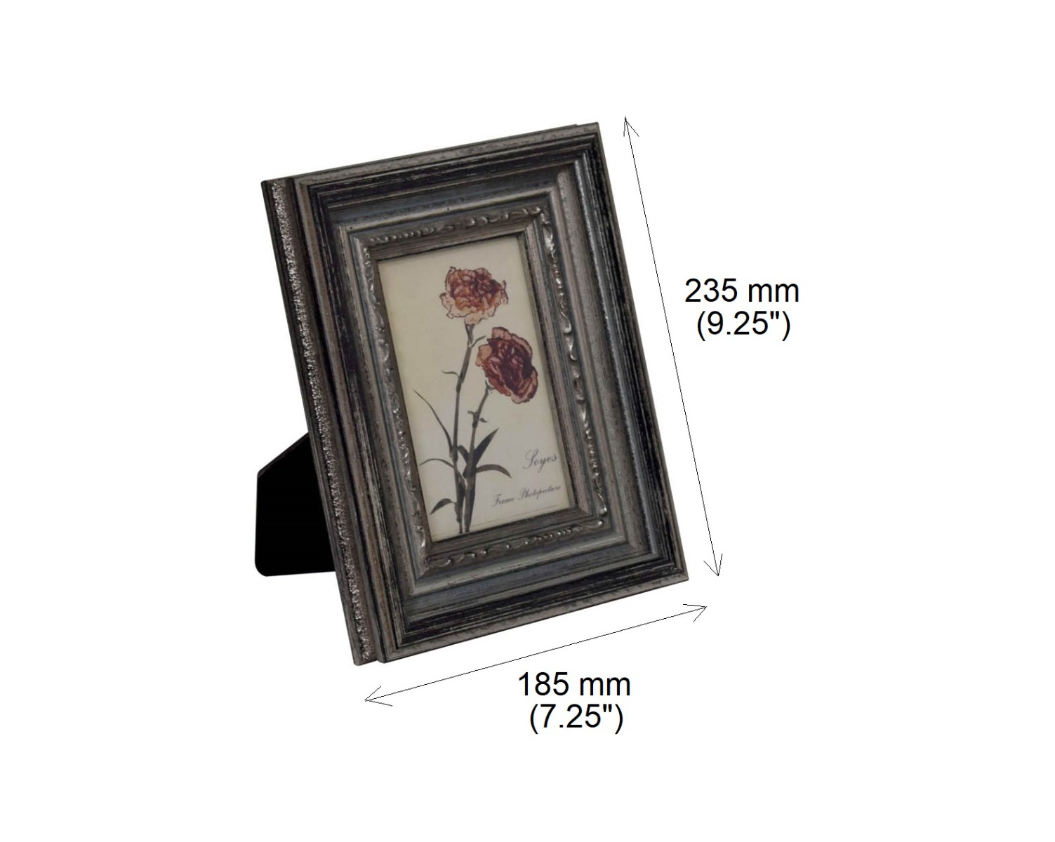 5x7" Photo frame in wood with decorative border in classic design.