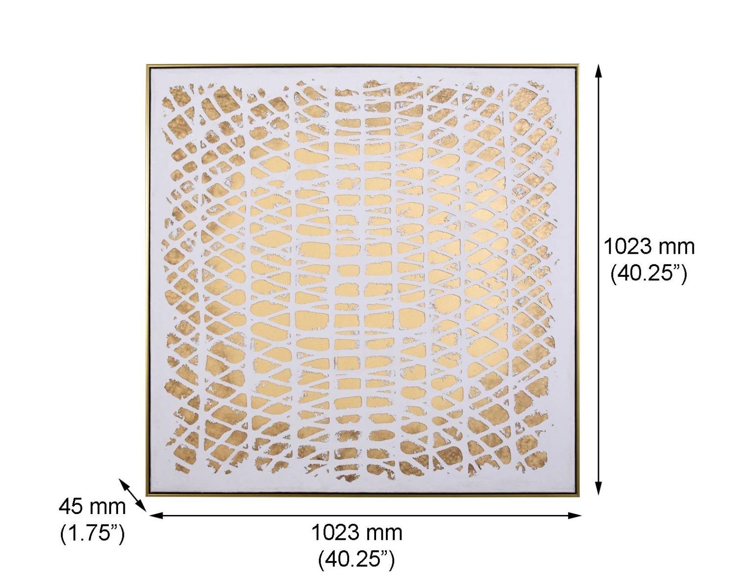 Abstract acrylic painting on canvas with gold frame perfect to enhance any modern and contemporary space.