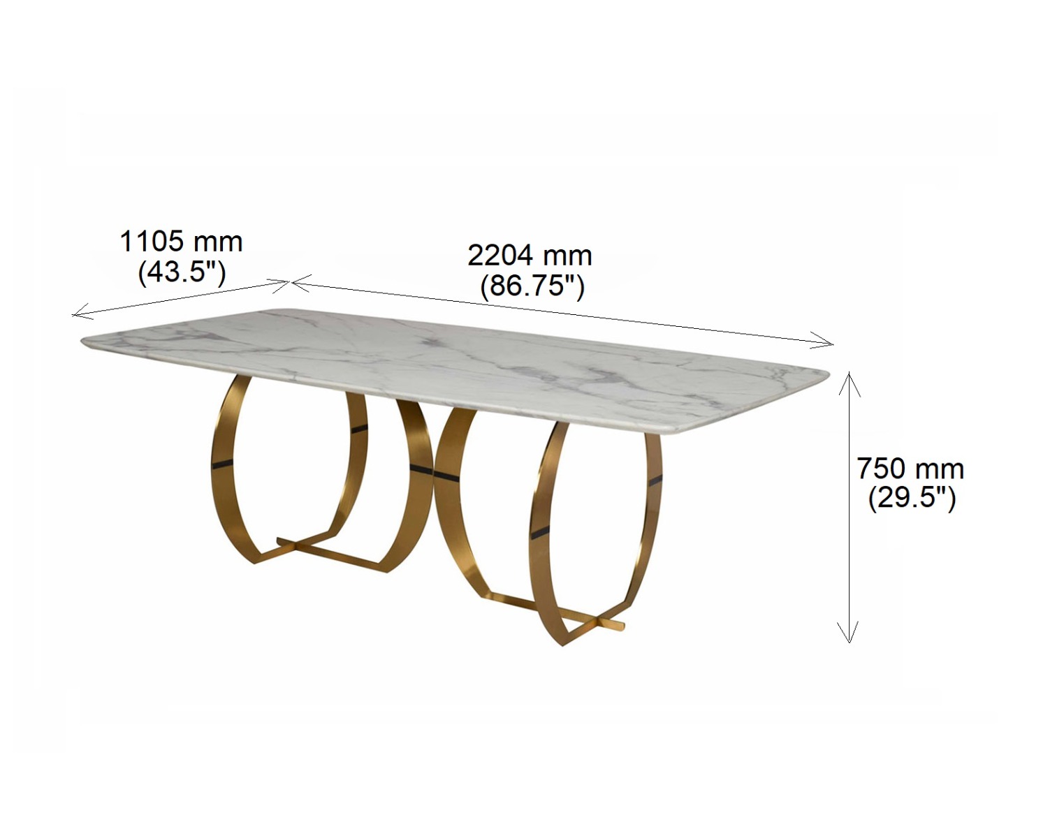 This beautiful & delicate 8-seater marble dining table is crafted to perfection. It is cast with a natural white a cursive artful base in matt gold plated stainless steel.