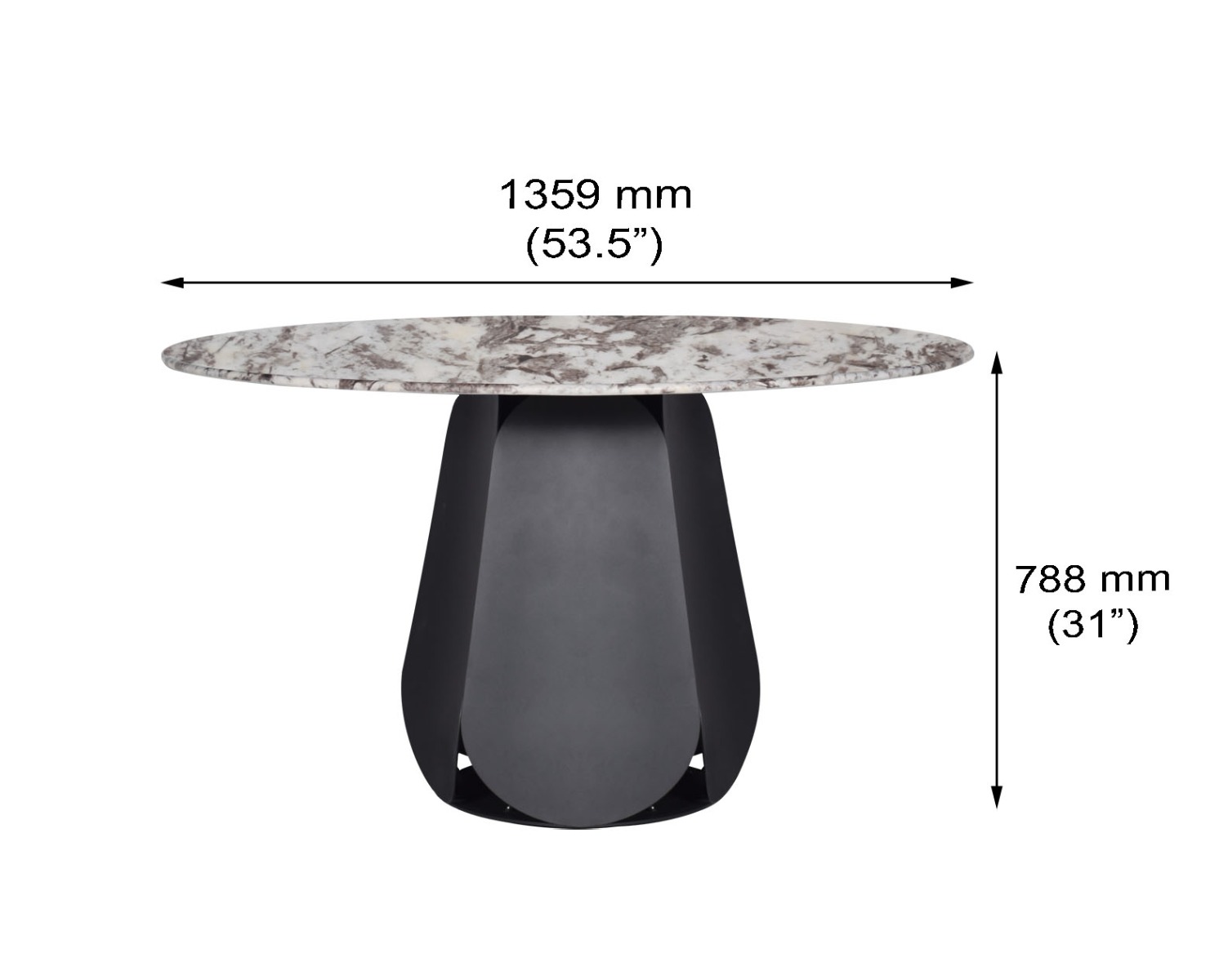This 6 seater minimalistically designed round dining table with marble top is an embodiment of contemporary chicness. This dining table in metal base comes in matt black finish in a contemporary design.