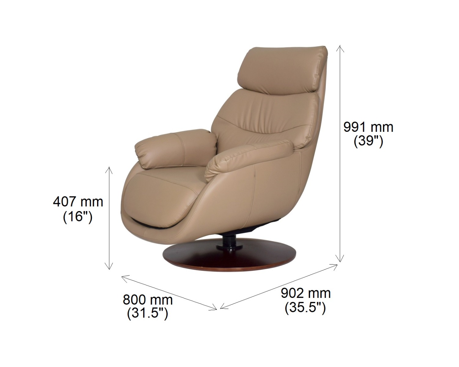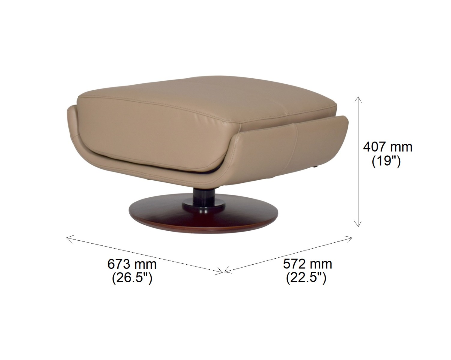 Rocking arm chair upholstered in faux leather with swivel and auto return adjustable locking mechanism. Rocking ottoman upholstered in faux leather with adjustable locking mechanism to compliment it.