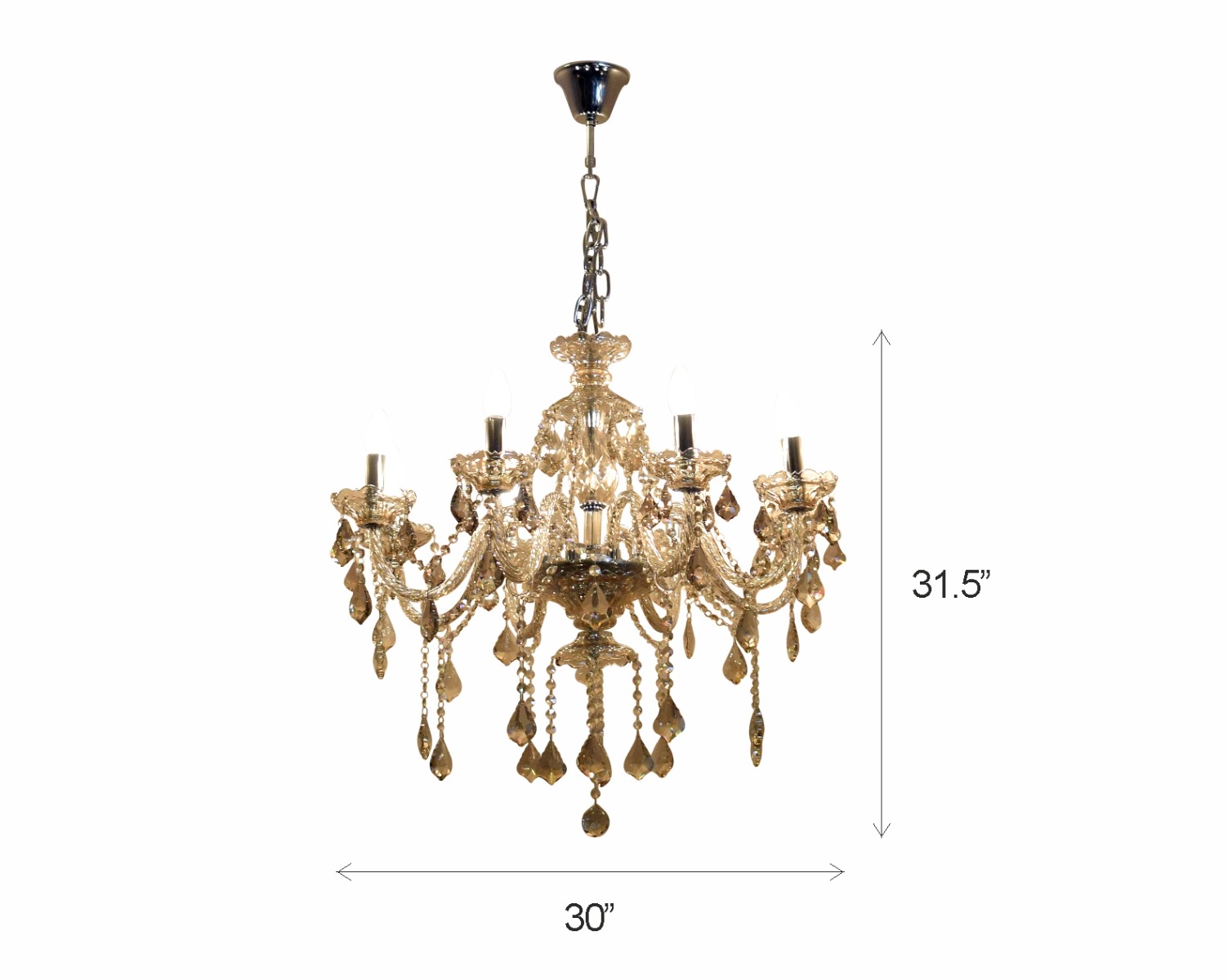 Victorian round chandelier with a profusion of crystal glass in champagne finish.