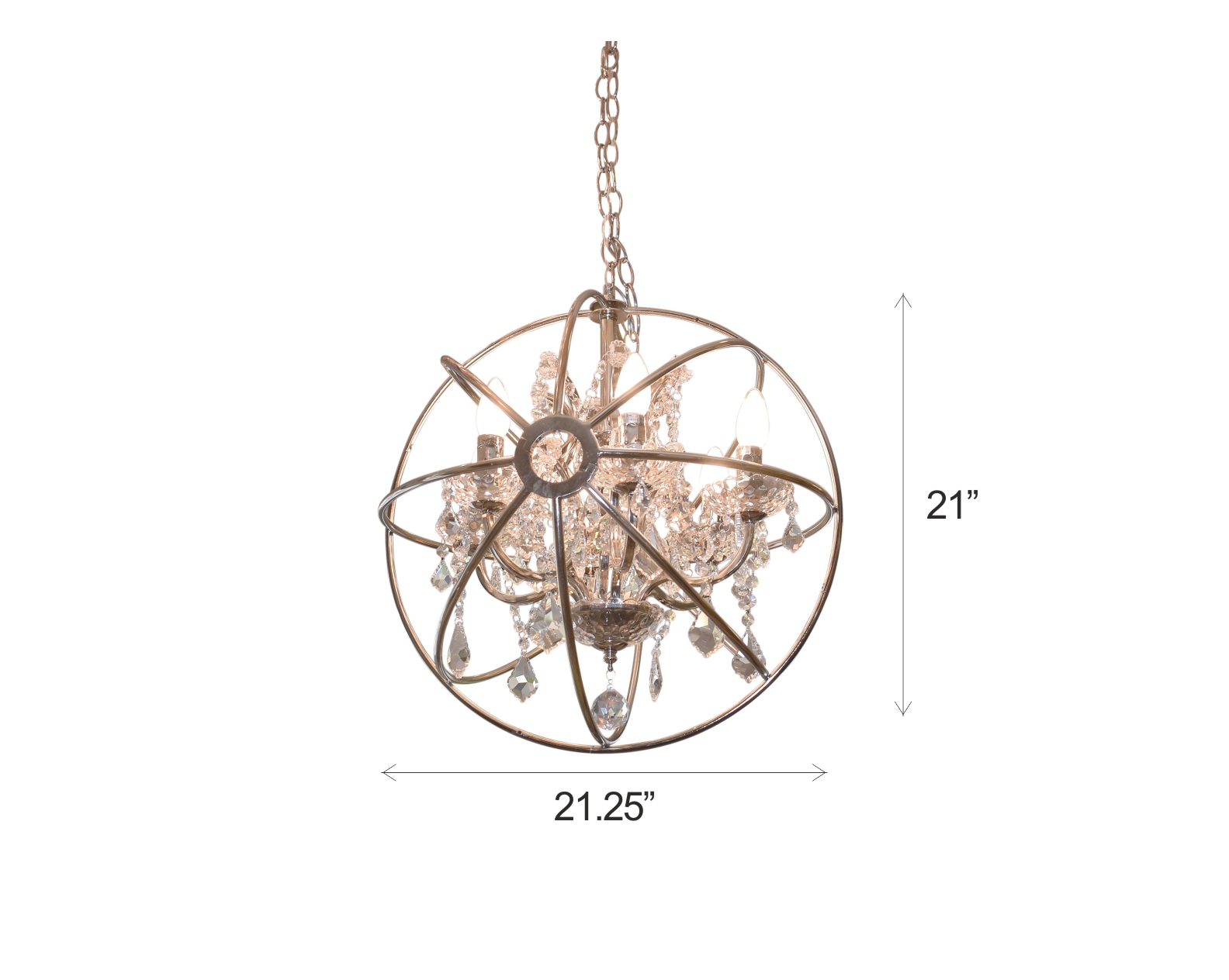 Pendant light with iron frame and crystal in cage motif in modern classic artful design.