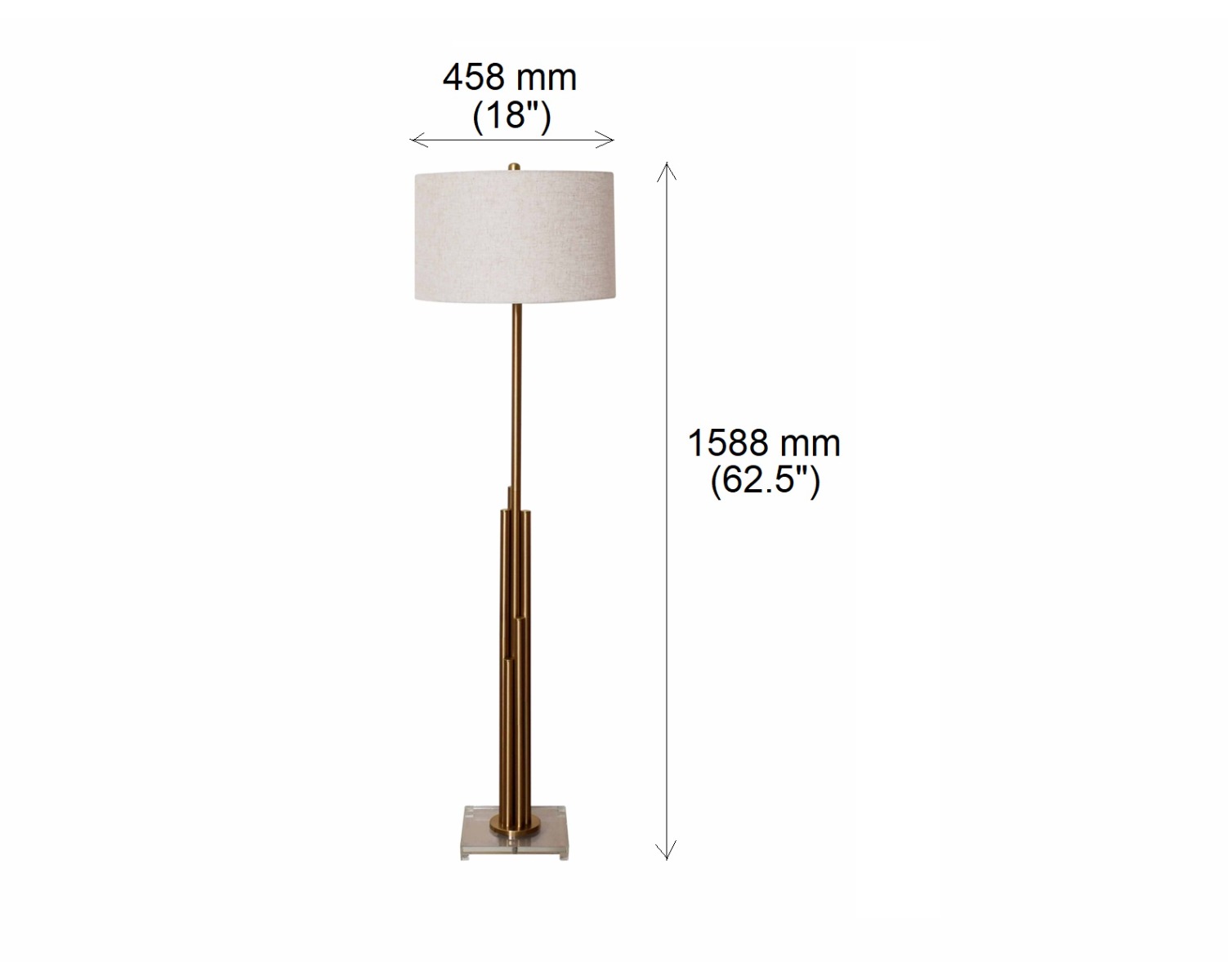 Art Décor floor lamp with multi-layered cylindrical bronze metal stand with a crystal base and a translucent fabric shade.