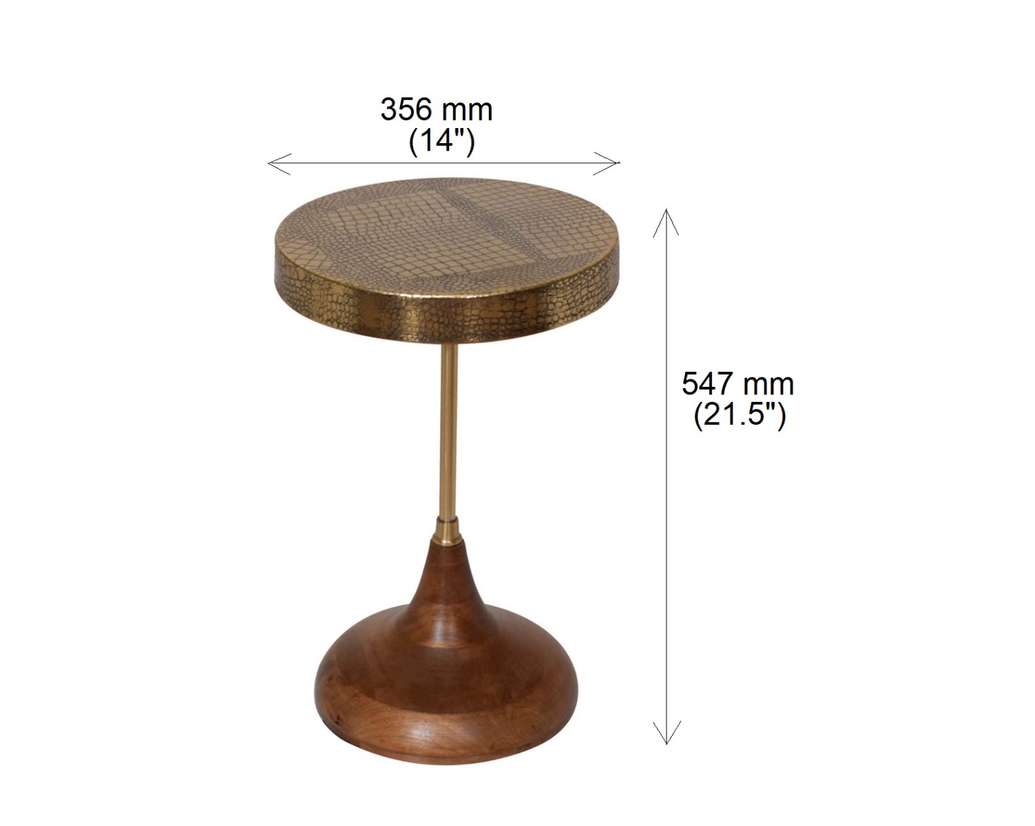This beautiful end table comes in a croc-etched design with a matte antique brass top with an exquisite classic wooden base design. It can simply elevate & enrich even the smallest places in your living space.