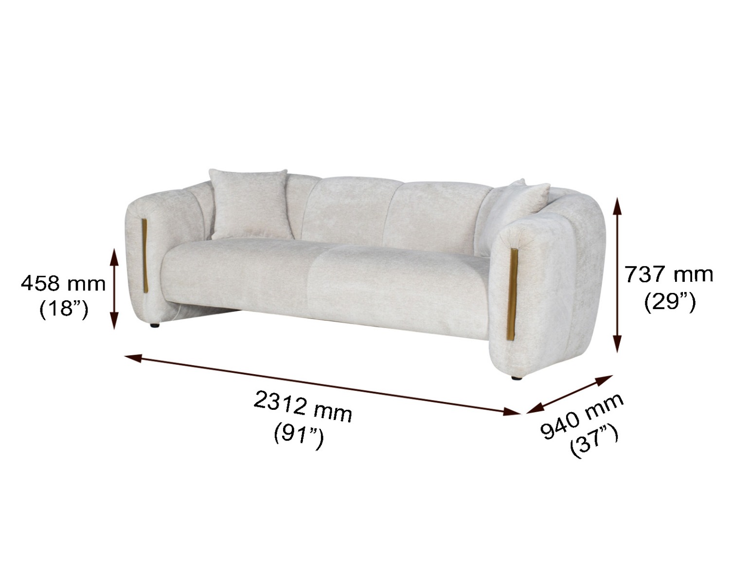 Elevate your living space with this exquisite 3+2+1 sofa set, featuring luxurious velvet upholstery and a stylish brush gold strip along the arms. The set includes five beautiful cushions that enhance its charm, while the vertical channel quilting on the backrest and sides not only provides a sophisticated texture but also invites relaxation, making this piece a stunning focal point in any room.