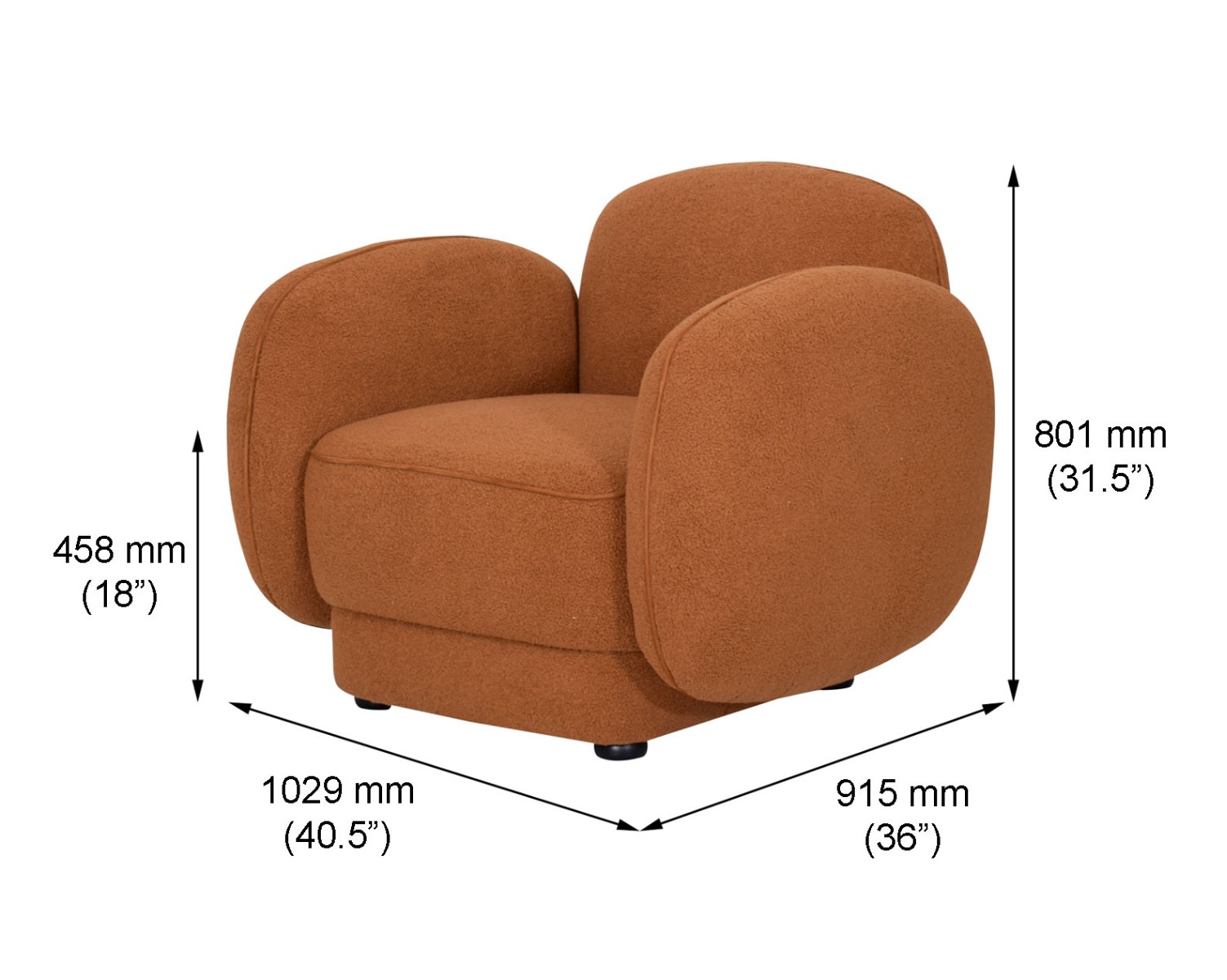 This modern chic occasional armchair upholstered in high-quality boucle fabric with a curvy design mingles perfectly with an elegant setting which adds spunk to any space.